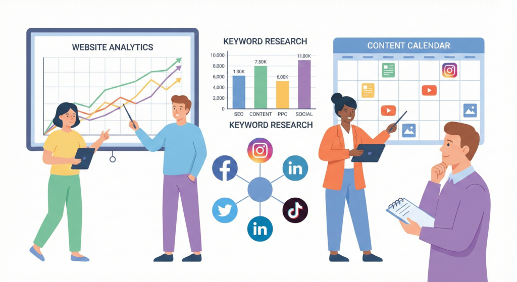 We understand that every business is different. That is why we focus on customized planning instead of ready-made solutions. Our team works closely with clients to improve visibility, attract the right audience, and generate real business growth.